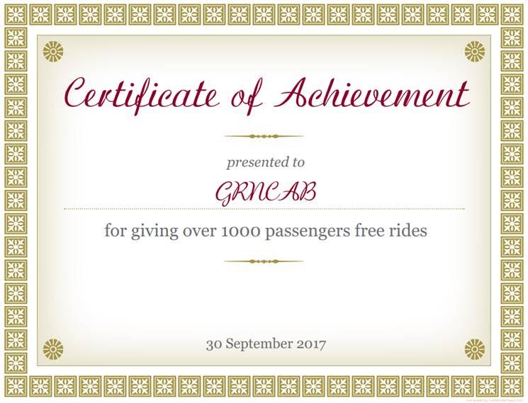 GRNCAB would like to pass on his thanks for all the lovely people he gave rides for.